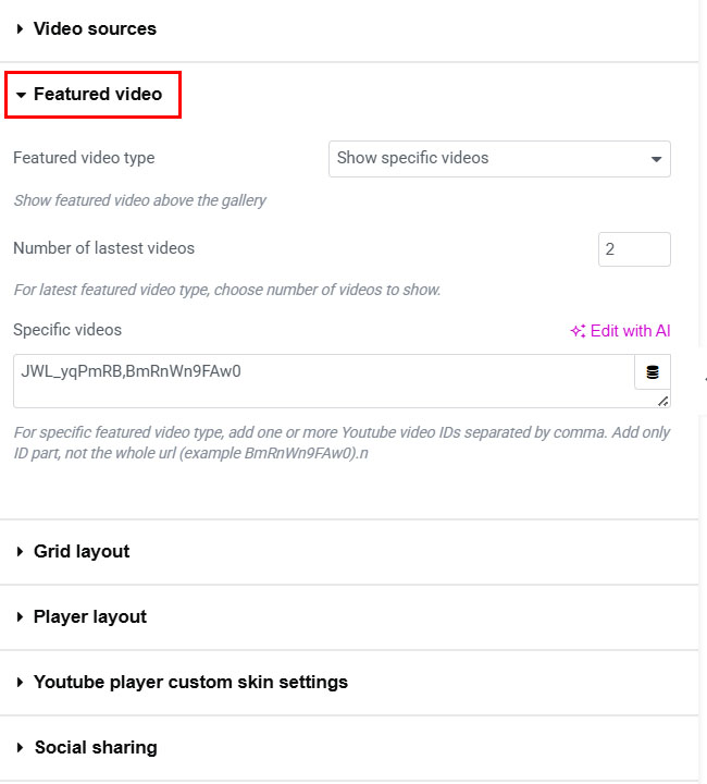Enable featured videos in Featured video tab