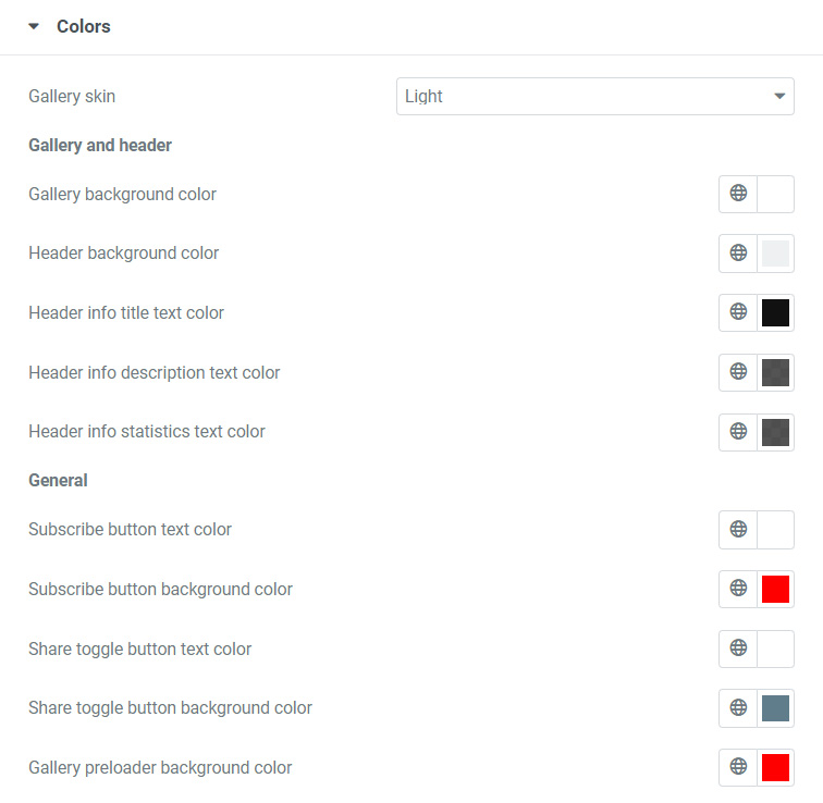 Inside Colors tab you can choose gallery skin to use and change some gallery colors