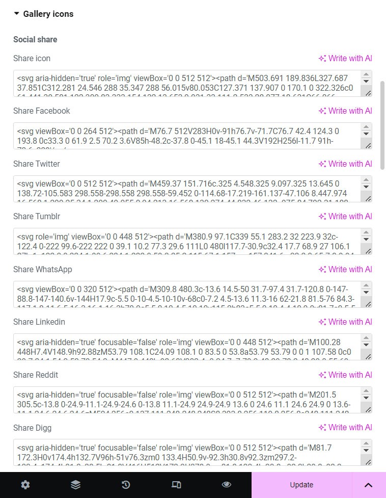 Icons in the gallery are SVG. Adjust settings for Gallery icons in Gallery icons tab: