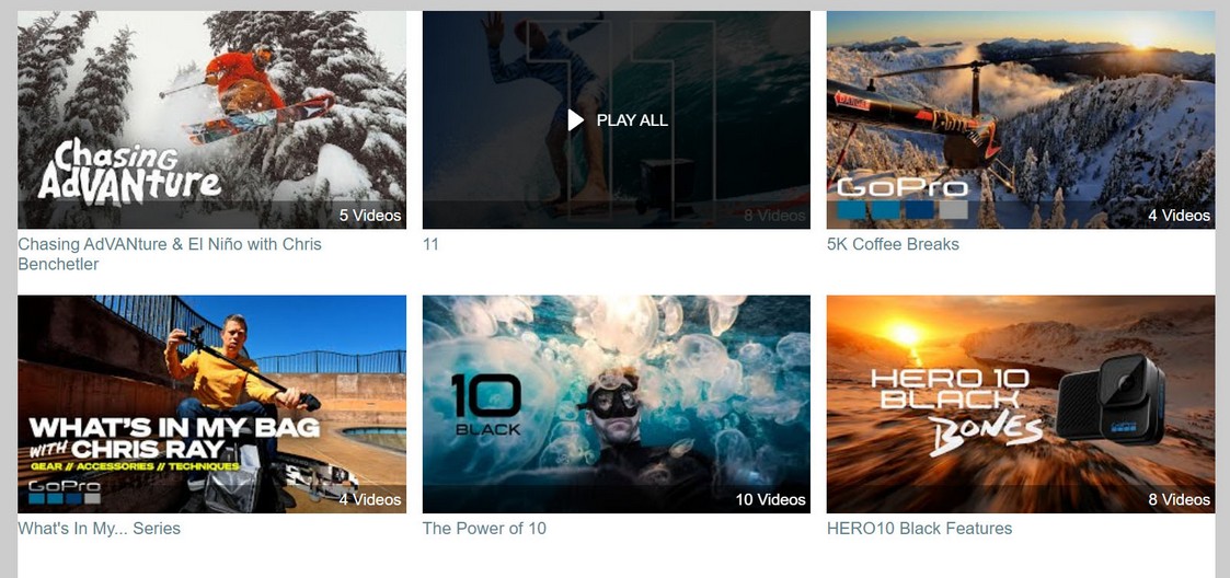 Gallery consists of of a header image, area beneath the header (called header content) and the player area with video (or grid, if the grid layout is chosen).