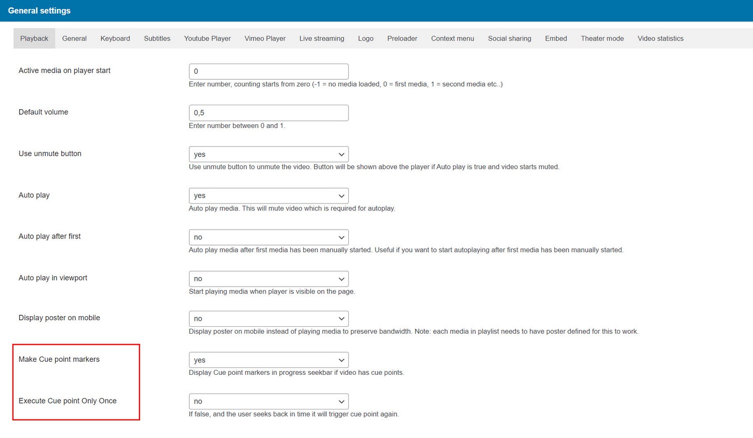 2. Set video auto play false in Edit Player / General settings / Playback tab.
