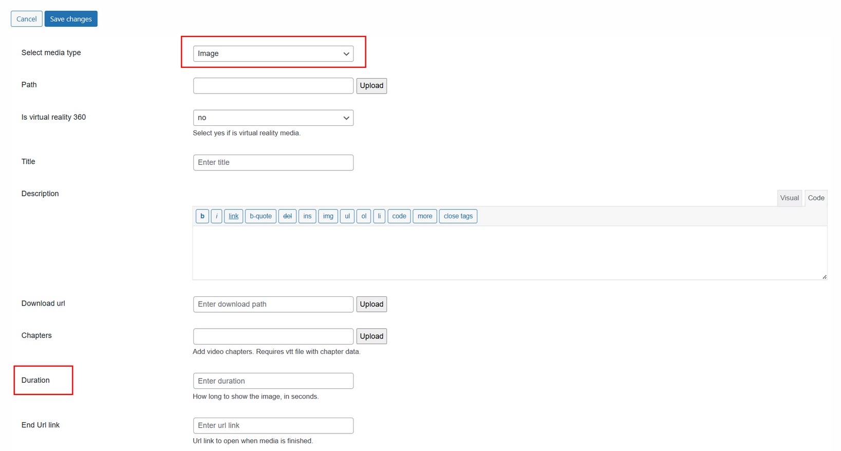 To add video to Player, in Edit Playlist choose Add media, and choose video type: