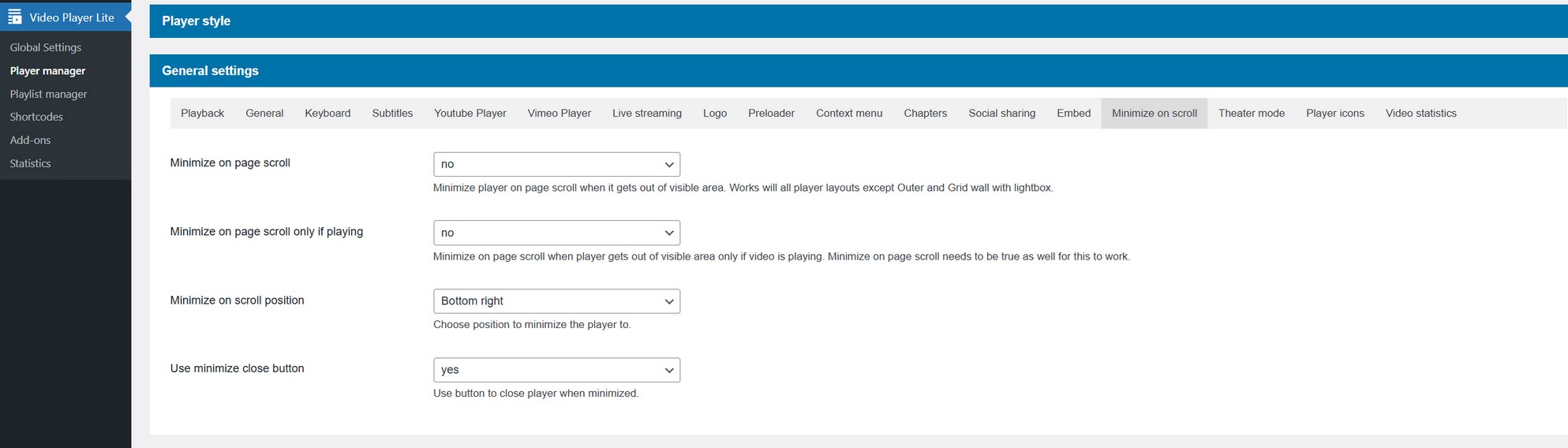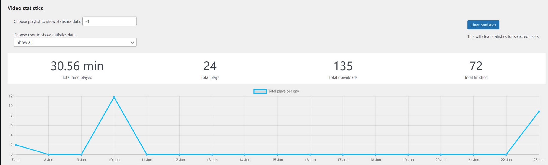 Access Statistics settings in Player Manager / Edit Player / Video Statistics tab.